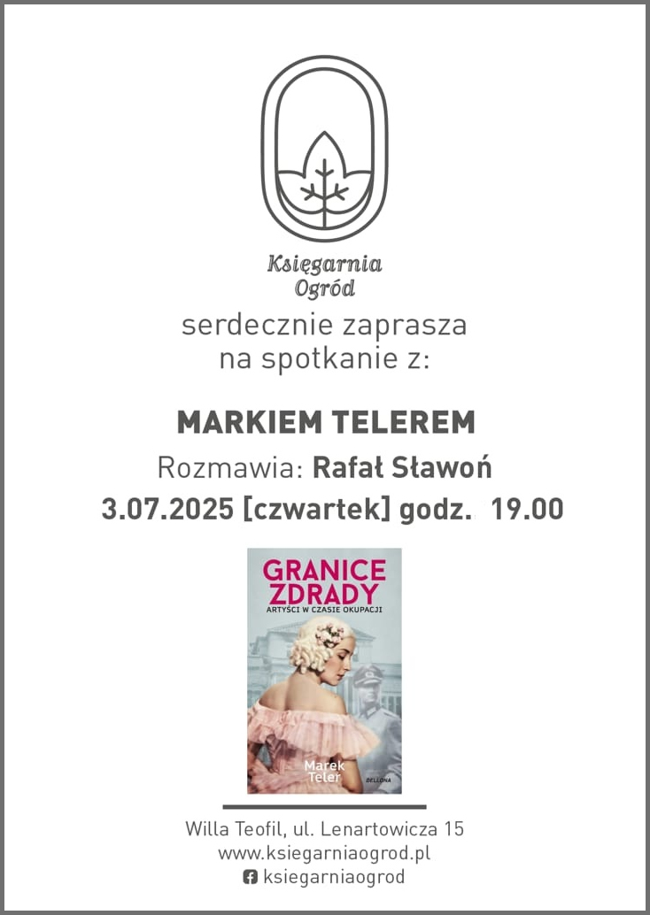 Zapraszam Was serdecznie na moje spotkanie autorskie wokół książki Granice zdrady. Artyści w czasie okupacji (Wydawnictwo Bellona), które odbędzie się 3 lipca 2025 roku (czwartek) o godz. 19 w Księgarnia Ogród w Willi Teofil przy ul. Lenartowicza 15 w Warszawie.